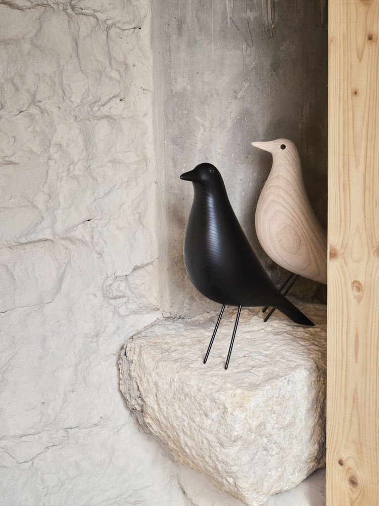 Der Eames House Bird von Vitra wurde mit einer neuen Oberflächenbehandlung veredelt: wasserbasierter Lack für Schwarz, pigmentiertes Öl für Baumwollweiss und dunkel pigmentiertes Öl für Walnuss – jetzt aus europäischem Holz. Das Ergebnis? Eine ausgeprägtere Holzmaserung und ein weicheres, natürlicheres Aussehen.